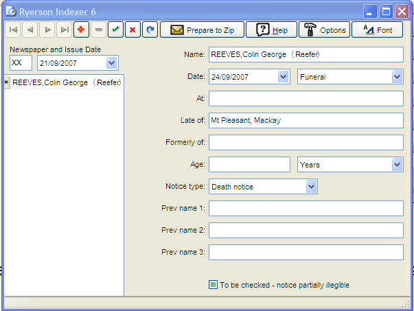 Points to note: - The Funeral Notice contains a Nickname for the deceased in double quotes, but we enter it in parentheses, ie ().